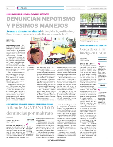 (AGATAN) de la Ciudad de Mé- los casos Heroes y Sinergia Animal, solo timas de maltrato en colonias o los trabajadores por parte