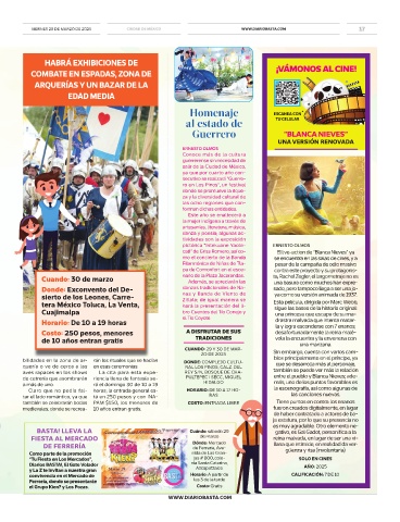 de cetrería que asombrarán riencia llena de fantasía se- PULTEPEC I SECC, MIGUEL entre el pueblo y Blanca Nieves; ade-