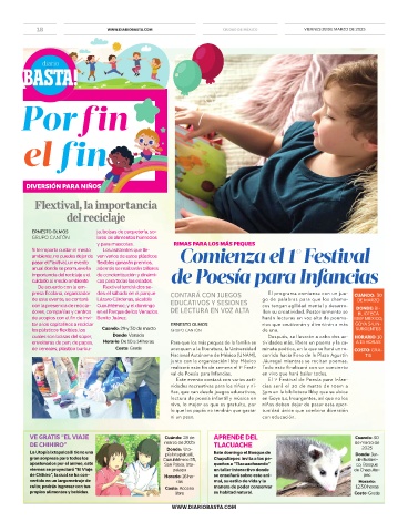 envolturas de pan, de papas, Horario: De 10 a 14 horas Para que los más peques de la familia se tividades más, libera un poema y la ca- A 15 HORAS