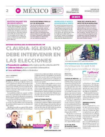 JUAN R. HERNÁNDEZ el gobierno federal y el Legislativo sí pueden di- GRUPO CANTÓN Walmart hará una inversión