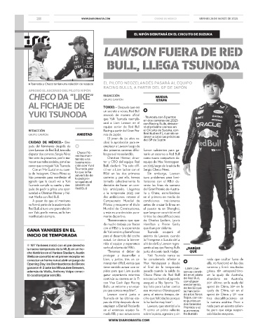 que Yuki Tsunoda reempla- • Tsunoda, con 3 puntos