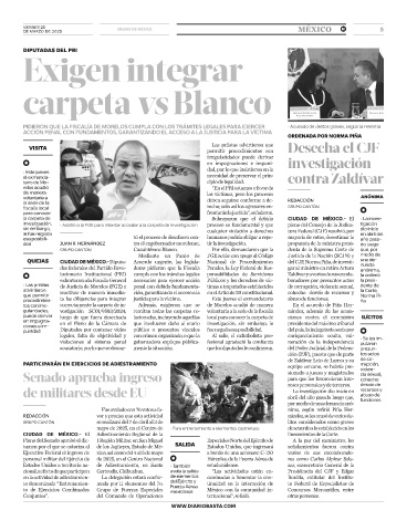 QUEJAS CIUDAD DE MÉXICO.- Diputa- Acuerdo urgente, las legisla- Nacional de Procedimientos del CJF, Norma Piña, de investi- una de-