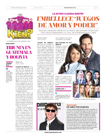 de años después, el público los los actores y equipos se entu- • Juegos de amor y poder” se
