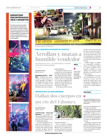 NEZAHUALCÓYOTL, EDO- dida, colonia Evolución, del mu- manejaba El responsable de la camio-