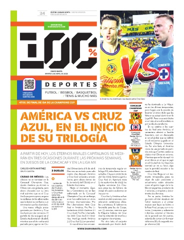 CIUDAD DE MÉXICO.- Los y Cruz Azul volverán a encon- abril de 2023); América ganó a Dignity Health mento inmejorable, pues no