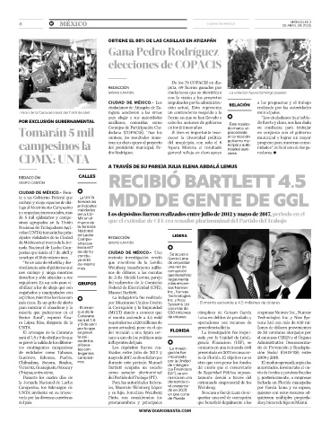 CDMX: UNTA dro Rodríguez. general refleja un claro apoyo liares nadores. ●