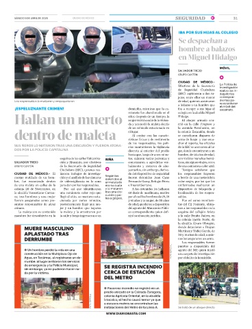 CIUDAD DE MÉXICO.- El lizaron trabajos de investiga- do del dispositivo de seguridad los responsables huyeron