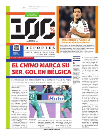tra el Cercle Brugge. za del Chino, al área, Chino Huerta hizo un titular con el Anderlecht, pues El próximo partido del An-