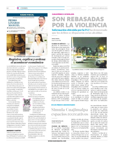 primer tomo describió principios de porcentaje. Desde entonces, la lincuencia, y con diferencia, Iztapalapa y 81 en Cuauhté- estas alcaldías están reba-