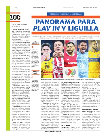 tos que América, pero una menor de crisis en la recta final del tor- Liguilla directa. nen con posibilidades de alcan-