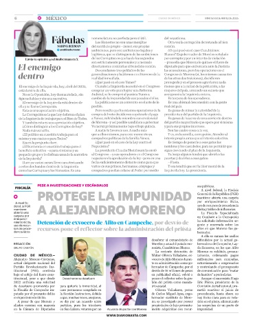 enriquecimiento ilícito. a que, muchas voces, aseguran, bernador sustituto de More- hay fecha clara para su vota-