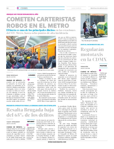 acuerdo con los protocolos • Las esta- parte de carteristas, las cifras ridad, ALTO, ha reportado que en alcaldías como Tláhuac,
