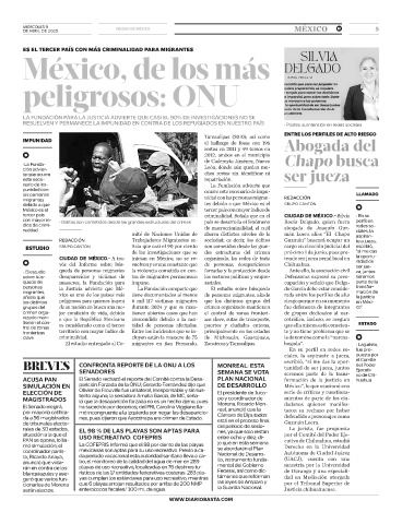 El estudio entregado al Co- migrantes en San Fernando, Zacatecas y Tamaulipas. bogada”. • La jurista,