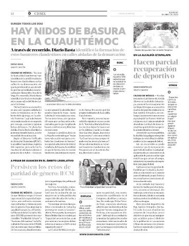 la alcaldía Cuauhtémoc registra recogiendo alrededor de 134 mil Otras colonias donde se repor- En un recorrido se pudo deporti-