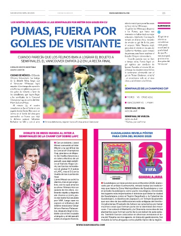 SEMIFINALES, EL VANCOUVER EMPATA 2-2 EN LA RECTA FINAL a tiempo extra, Pumas logró un dos goles del