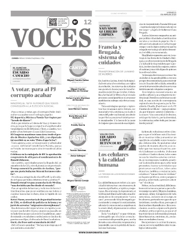 -Falta que retorne a Cabeza de Vaca y Alonso An- CONTRALOR de mujeres que conocen de esas injusti- ños de justicia”.