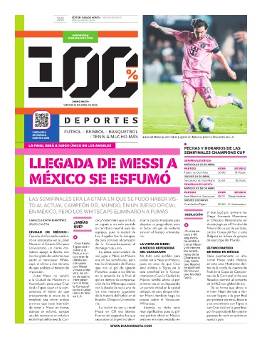 mático apagó la ilusión, con zarán a la La única oportunidad de DEL VANCOUVER las semifi- DE MESSI EN MÉXICO