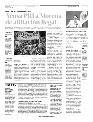 ESCUELAS El CEN del tricolor aseguró brayó que la afiliación política la administración federal re- preocupa