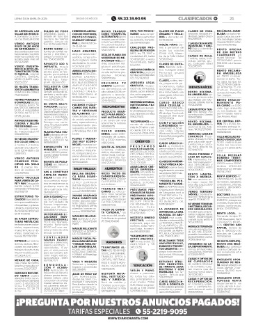 LUNES 14 DE ABRIL DE 2025 CIUDAD DE MÉXICO 55.22.19.90.95 CLASIFICADOS B! 21