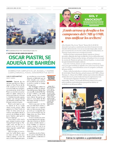 tivas de brindar una competen- problemas del RB21, al culminar GP, Lando No-