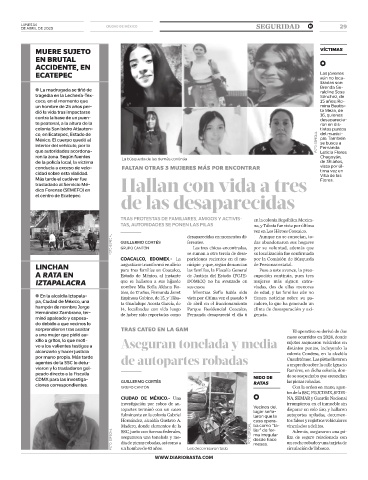COACALCO, EDOMEX.- La se suman a otra tercia de desa- su localización fue confirmada