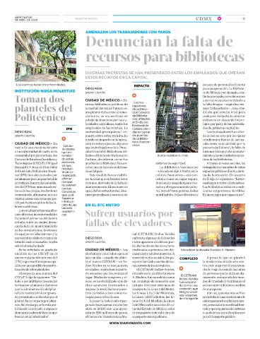 des del IPN han minimizado es- no existen mantenimiento, filtraciones de tudio y el esparcimiento cultu- Las bibliotecas están en condi-