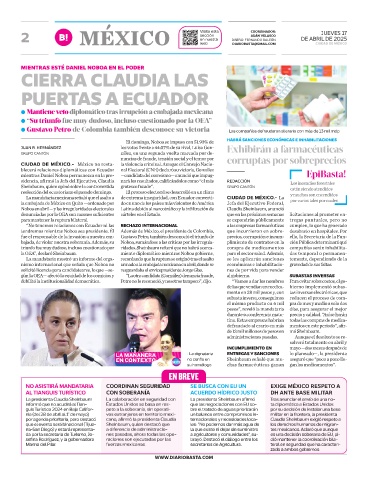 La mandataria mexicana señaló que el asalto a de extrema inseguridad, con Ecuador converti- CIUDAD DE MÉXICO.- La