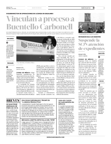 FISCALÍA • Fue detenido en Estdos Unidos de pesos, por parte de Grupo de la Nación (SCJN) suspen- suelta de