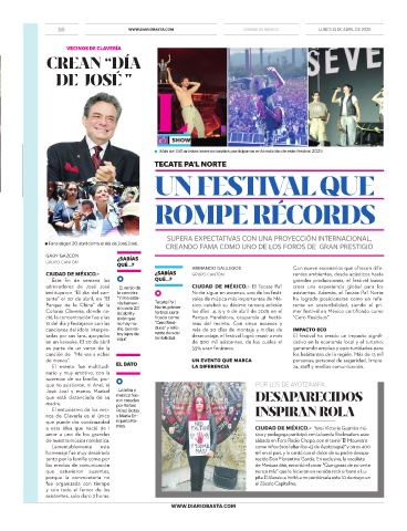 tante" el 20 de abril, en "El "Y me esta- vales de música más importantes de Mé- ha logrado posicionarse como un refe-