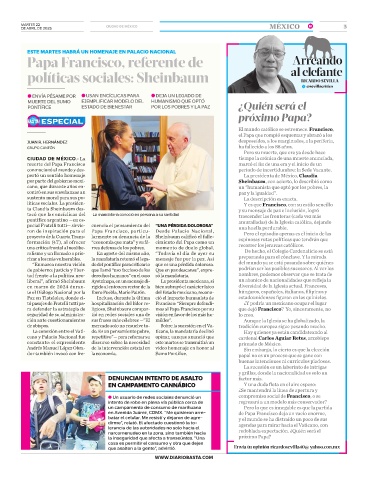 ra defender la estrategia de ligioso, Sheinbaum compar- mos al Papa Francisco por su que dejó Francisco? Yo, sinceramente, no
