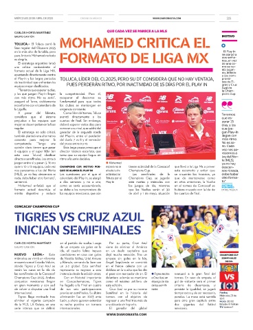 quiero 10 o 12 equipos, cada vez CHAMPIONS CUP, MOTIVO POR- espera no le tienen actividad de la Concacaf que llevó a la Liga Mx a prever descen-