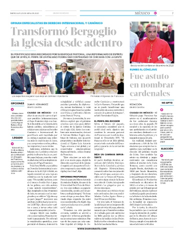 especialmente tadas por el Papa Francisco. dirección espiritual de la Iglesia: cediano del Cabildo Metropo- delitos al interior de la Curia sonalmente