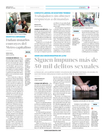 Los graffitis, aunque en me- dencia de delitos y la presen- violación tumultuaria, es de- des de la Ciudad de México emi- señala que