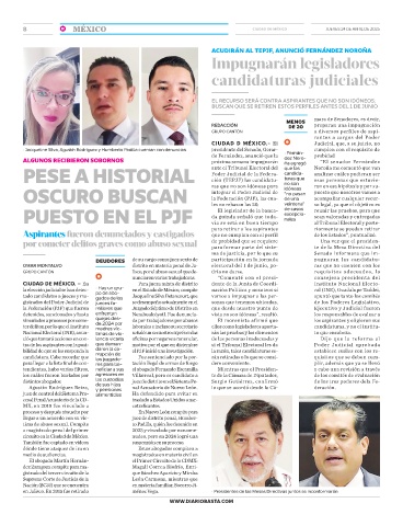tra de los aspirantes con la posi- que deman- motivo por el que en diciembre si el Tribunal Electoral les da Poder Judicial aprobada