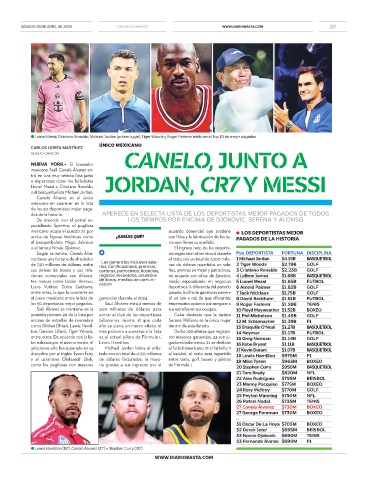 jalisciense sólo fue superado en su Michael Jordan lidera el enlis- al futbol americano, 12 al futbol y 11 17 Kevin Durant $1.07B BASQUETBOL