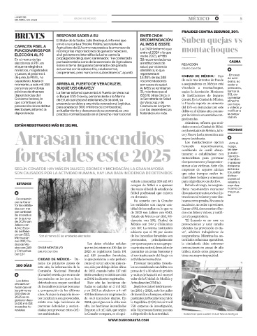 2025 se re- tos incidentes son provocados, de 44.3 incendios diarios. En pastizales, la Fiscalía General de