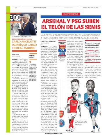 no seguirá más en el Real entre Gunners y Parisinos TV: TNT pese a empatar en la últi- 2-0 PSG / Fase de Grupos.