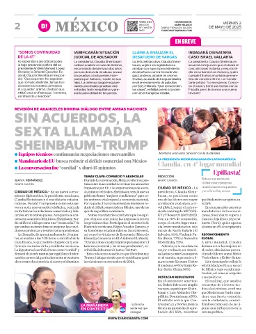 ● Mandatario de EU busca reducir el déficit comercial con México LA PRESIDENTA MEJOR EVALUADA EN LATINOAMÉRICA