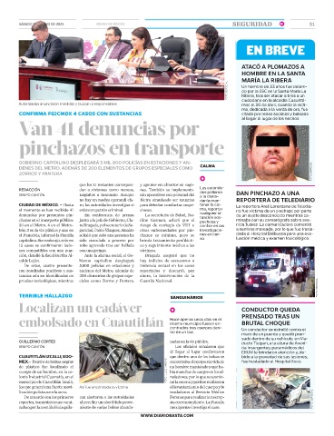 chazos en el transporte público: junto a la jefa de Gobierno, Cla- dine Gasman, aclaró que el pechosa y minaba con su camarógrafo sobre ave-