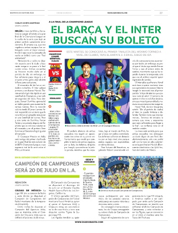 phinha que se coló tras rebotar en Champions ● Barcelona visitará al Inter de Milán, en el Giuseppe Meazza la final”. La confianza reina en el