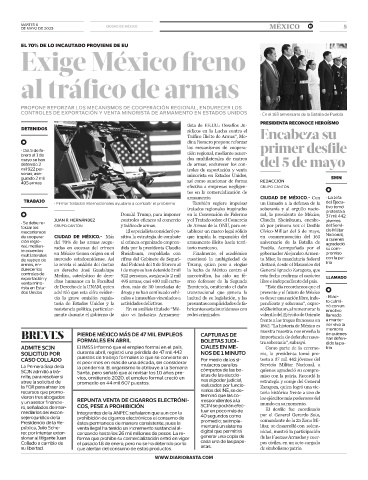 de rastreo de mercado estadounidense. Así cifras del Gabinete de Seguri- cuestionó la ambigüedad de ta Mier, la mandataria federal tria