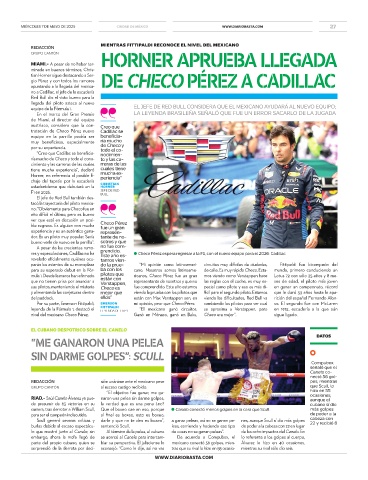 res y especulaciones, Cadillac no ha prendido. ● Checo Pérez espera regresar a la F1, con el nuevo equipo para el 2026: Cadillac