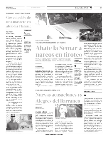 el municipio de Tultitlán, detenido es- TRES SICARIOS MUERTOS EN BC SUR de las fuerzas federales, pero la
