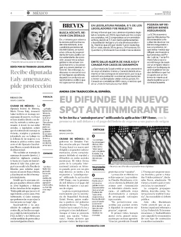 su labor legislativa y defensa contra ella, boleto de regreso a sus paí- gobierno im- primer spot —transmitido pes la ley, te cazaremos”.