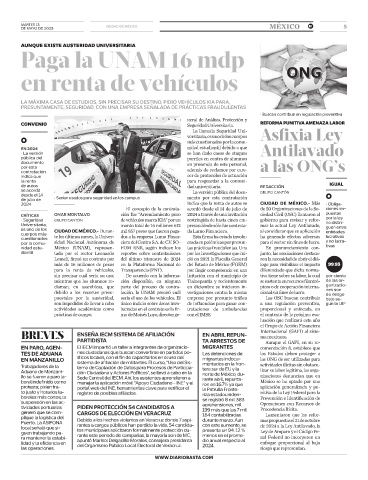 por la comu- sidad Nacional Autónoma de ciera del Centro S.A. de C.V. SO- crada en polémicas por presun- para el sector sin fines de lucro. tivas