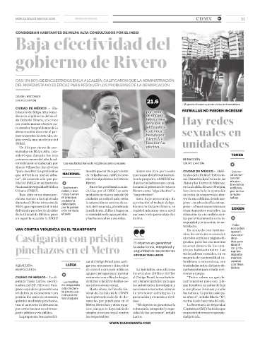 Urbana (ENSU). calles y ave- cluidas por el INEGI en esta Rivero como “algo efectivo” o han denunciado la operación por temor