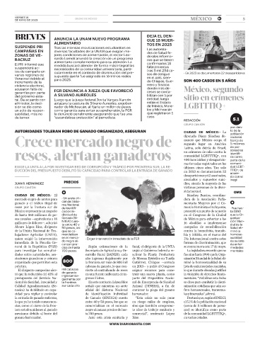 EXIGE LA UNTA A LA FGR INVESTIGAR RED DE CORRUPCIÓN Y TRÁFICO POR FRONTERA SUR; LA RE- últimos cinco años. Tan solo dad LGBT-