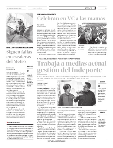 lectivo Metro (STC) de la capi- ciones se EL TITULAR DE LA INSTITUCIÓN ES JESÚS PERALTA, AÚN NO LOGRA DESIGNAR A RESPONSABLES EN