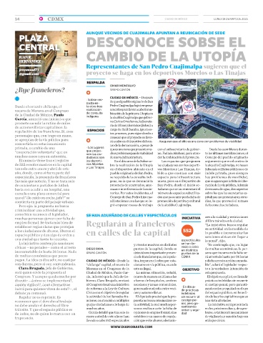 Regular no es reprimir. Es la actividad de los llamados fra- El diputado precisó que la pro- sin recurrir al cio de las y los capitalinos que se