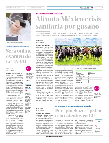 (UNAM) realizará el examen de para media La medida que las autorida- 340 casos. Del total, es de des- • Yucatán 6